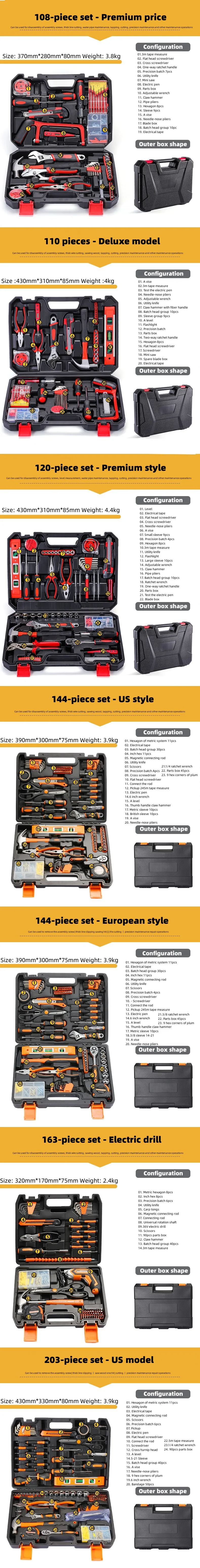 120 Sets of Hardware Tools Set/tool Box Electrical Carpentry Manual Maintenance Set Manufacturers Wholesale